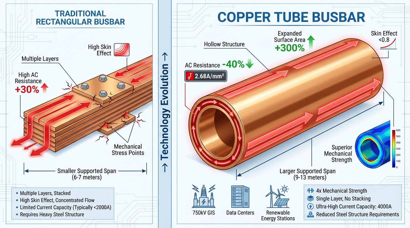 Tabla: Comparación de rendimiento de barras colectoras de tubos de cobre frente a barras colectoras rectangulares tradicionales (2025)