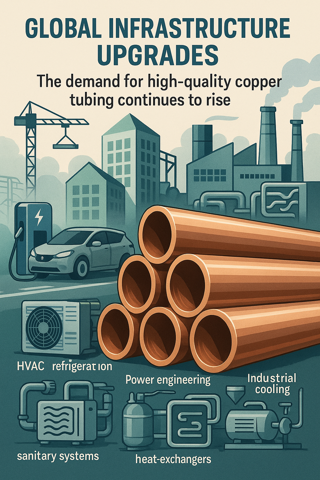 A medida que la infraestructura global experimenta mejoras a gran escala, que van desde reemplazos de sistemas HVAC hasta construcción de edificios energéticamente eficientes, adopción de bombas de calor, enfriamiento industrial y la acelerada electrificación del transporte, la demanda de tuberías de cobre de alta calidad continúa aumentando. En HVAC, refrigeración, ingeniería energética, intercambiadores de calor y sistemas sanitarios, los tubos de cobre siguen siendo uno de los materiales más confiables gracias a su excelente conductividad térmica , resistencia a la corrosión , formabilidad , y 100% reciclabilidad .